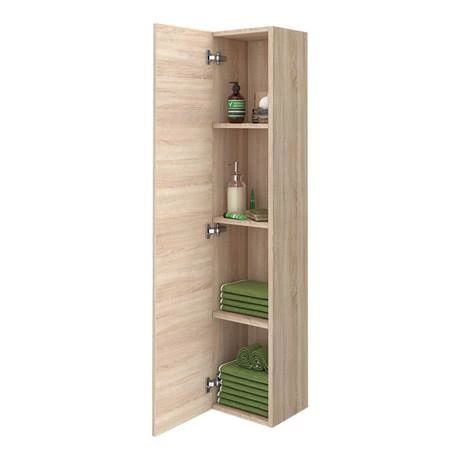 The Brooklyn Natural Oak modular bathroom furniture range combines up to date looks with practical storage. Features a soft closing door and provides plenty of space for toiletries, the Brooklyn wall hung tall storage cabinet is perfect for adding modern style to any bathroom. This high quality Natural Oak textured wood effect cabinet is supplied with quality matt chrome handle and wall fixings.
