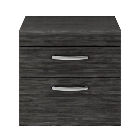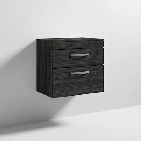 (1) Wall Hung Double Drawer Vanity Unit – Black Woodgrain (W600 x D383 x H430mm)
