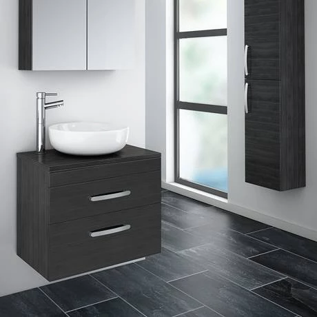 This high quality Black Woodgrain textured wood effect unit is supplied with quality matt chrome handles. Choose one of our attractive counter top basins for a stylish contemporary focal point in your bathroom.
