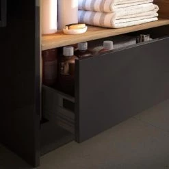 Hudson Reed Coast 500mm Wall Mounted Vanity Unit with Open Shelf & Basin – Grey Gloss/Driftwood
