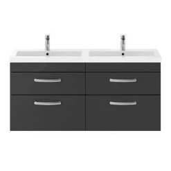Brooklyn 1205mm Gloss Grey Double Basin 4 Drawer Vanity Unit