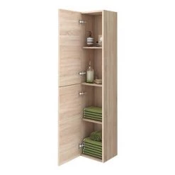 Brooklyn Grey Avola Wall Hung Tall Storage Cabinet with Matt Black Handles